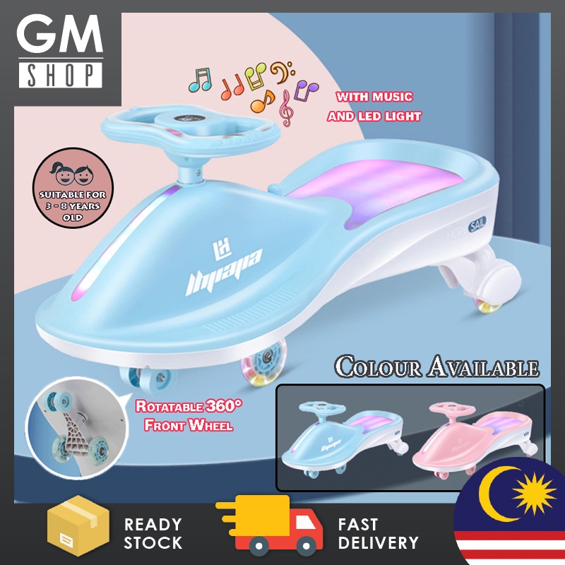 Kids Yoyo Twist Car 3 To 8 Years Old 360 Degree Rotating Wheel Swing Car with LED Light